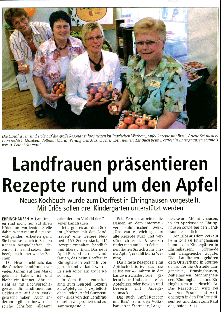 Mit viel Engagement und Kreativität haben wir Landfrauen vom Ortsverband Störmede ein Rezeptbuch "Apfel-Rezepte mit Biss" erstellt. Unser kleines Buch mit Apfelrezepten enthält Köstlichkeiten und Wissenswertes rund um den Apfel.