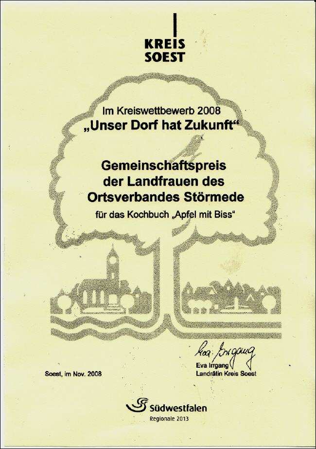 Urkunde Sonderpreis beim Dorfwettbewerb, "Unser Dorf hat Zukunft" 2008 |