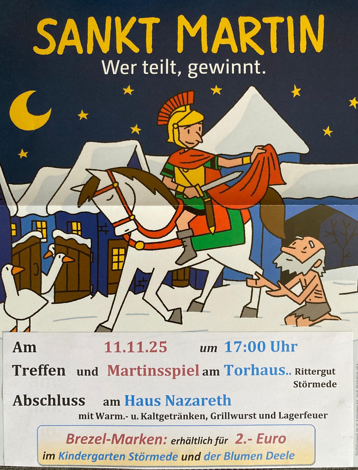 Begonnen wird um 17:00 Uhr am Torhaus am Rittergut mit einem Martinsspiel der Kommunionkinder.