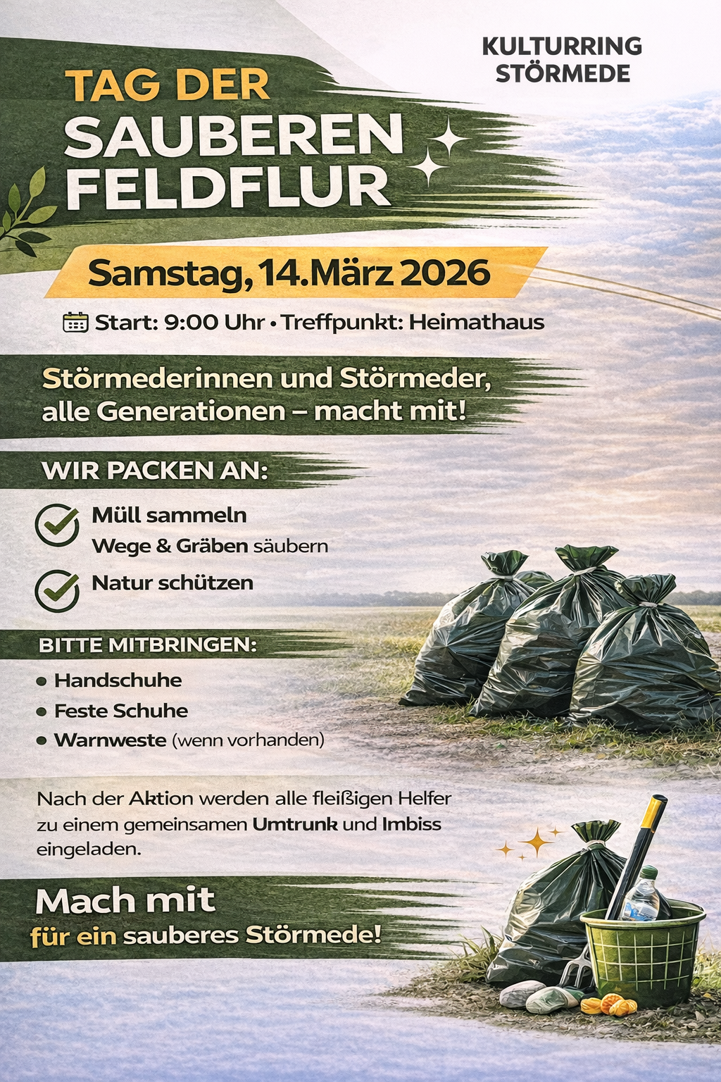 Der Kulturring Störmede lädt alle Bürgerinnen und Bürger  auch Kinder und Jugendliche herzlich ein, sich an unserer Aufräumaktion zu beteiligen.